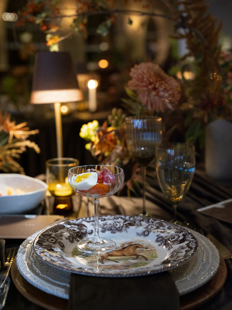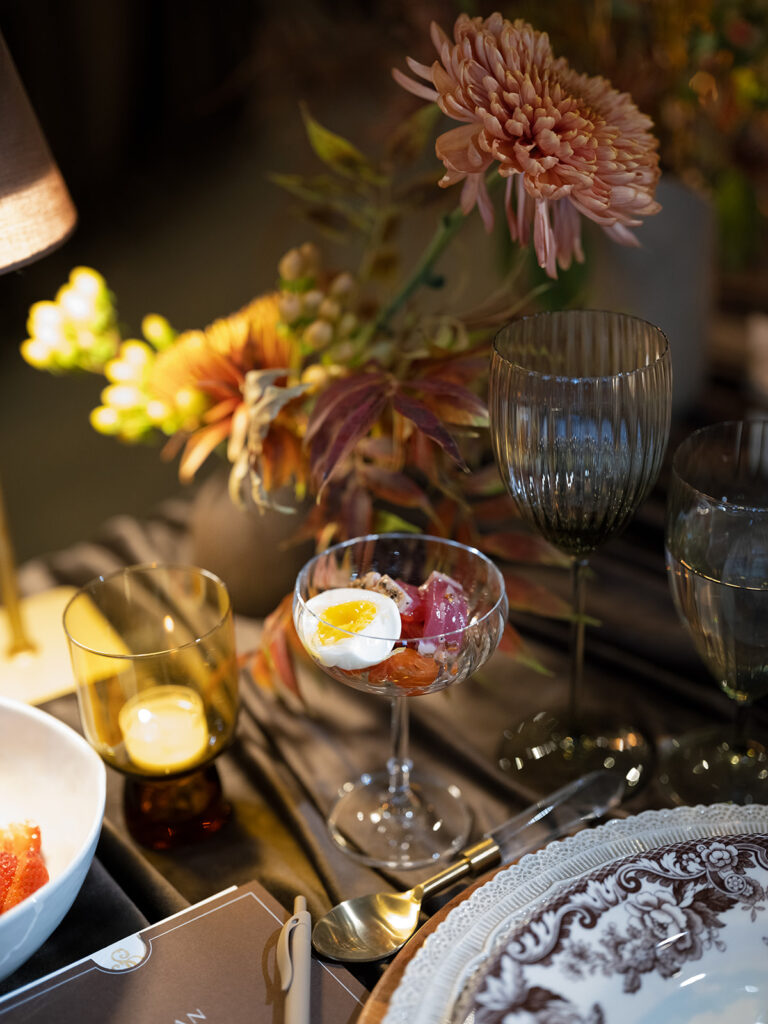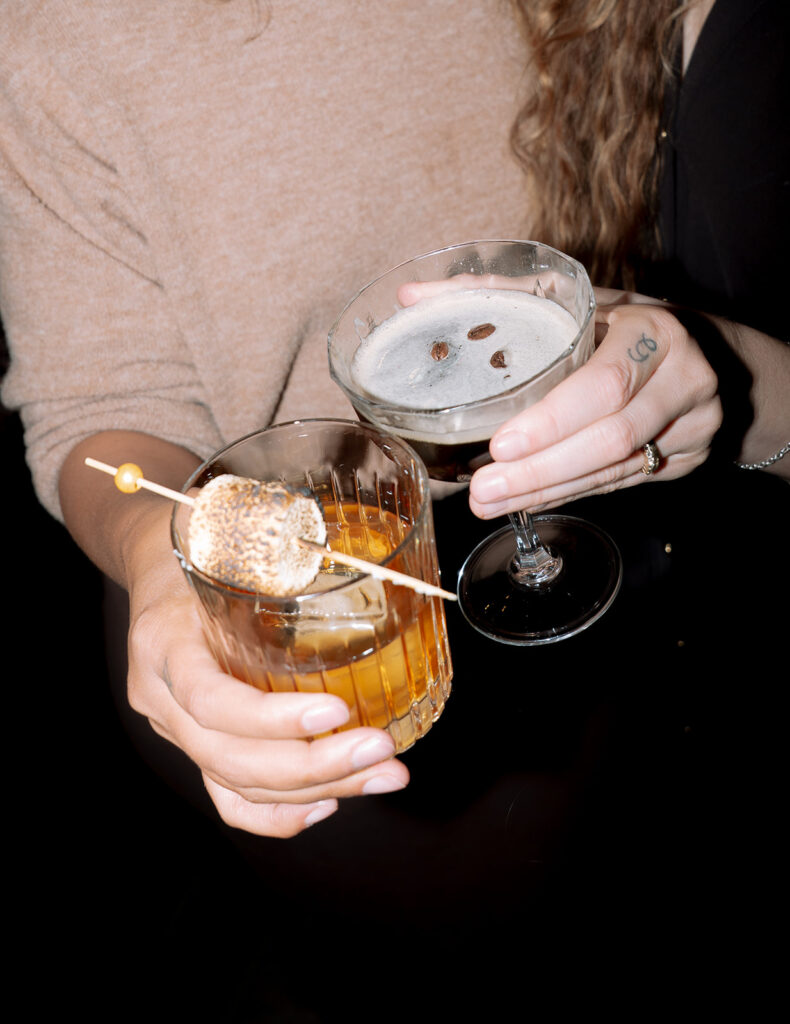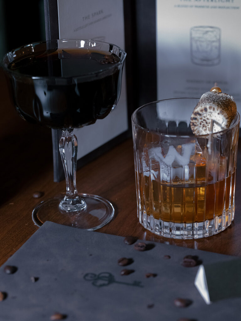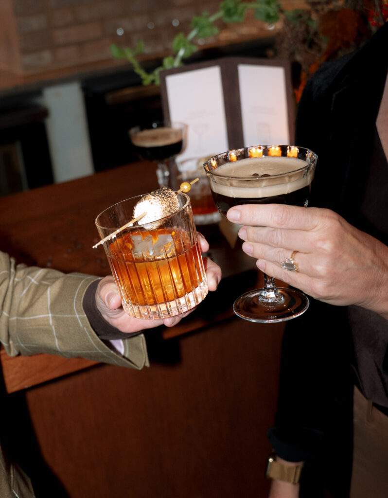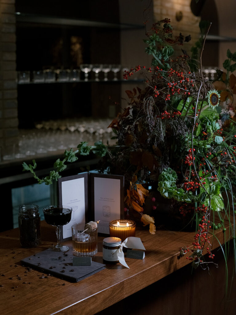 The bar continued the chocolate story, offering a carefully curated menu of cocktails that matched the rich, luxurious palette. Guests sipped on Espresso Martinis, perfectly echoing the coffee and chocolate notes, while smoked Old Fashioneds and other specialty cocktails added warmth, depth, and a hint of theatrical flair to the evening. Each drink was designed to complement the overall aesthetic, creating a seamless sensory experience.